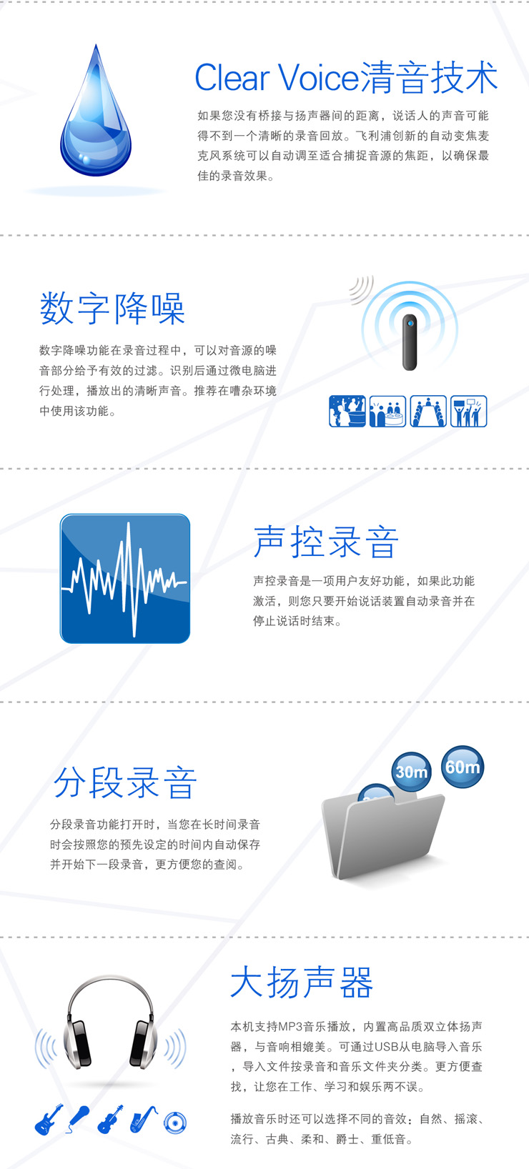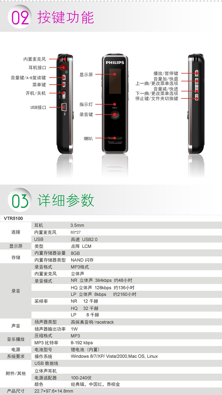 特性 時(shí)尚小巧,立體聲錄音!