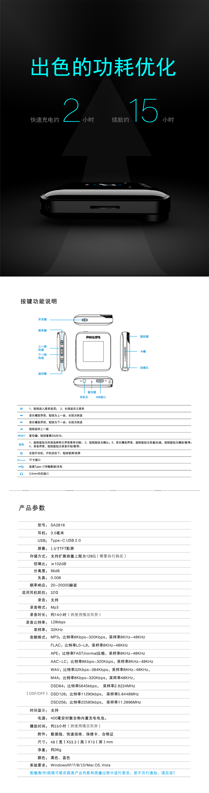 藍牙MP3隨身聽,便攜無損播放器,發燒級HIFI播放器,DSD硬解碼 藍色+32G高速卡