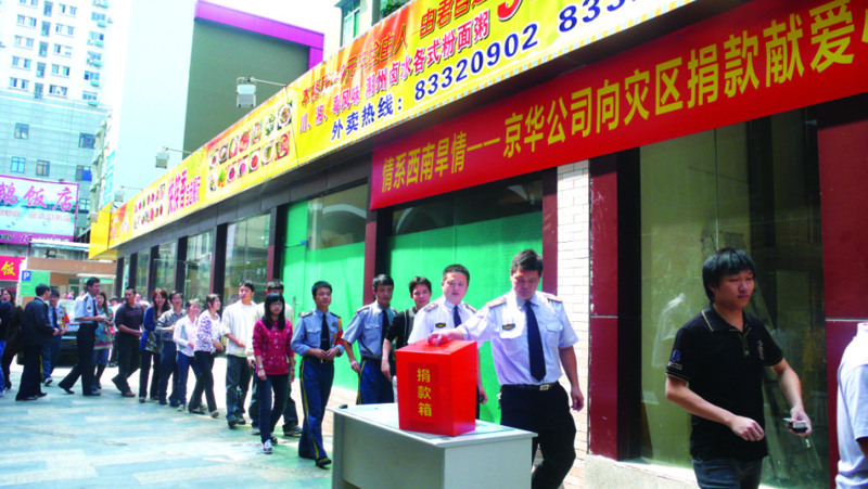 公司特困職工陳招娣從公司宣傳欄了解到西南旱災后,拿出30元投入捐款箱;來自貴州的職工代表也將他們平時省吃儉用的錢捐了出來:“家鄉正在受災,我們應該盡一份自己的力量。”