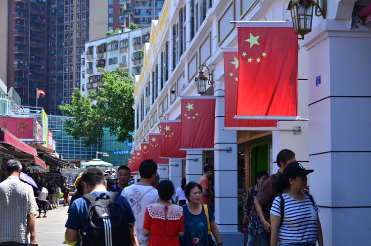 經(jīng)過口岸邊檢檢查完畢后,才算是真正進(jìn)入到中英街景區(qū)內(nèi)。一條窄小細(xì)長(zhǎng)的小巷指引著前來(lái)觀光的客人大步邁進(jìn),這就是著名的“一街兩制”的中英街。細(xì)細(xì)品味街區(qū)的獨(dú)特文化,一點(diǎn)點(diǎn)揭開它的神秘面紗。小巷的一邊是香港生活的寫照,繁體字的街邊店鋪和建筑物把香港的文化和中英街回歸祖國(guó)前的歷史面貌展現(xiàn)得淋漓盡致。小巷的另一邊,則完全是中國(guó)元素的印記,一排排的小樓房整齊劃一地漆上了干凈、整潔的大白漆,墻上插滿了一面面的中國(guó)國(guó)旗,顯得如此的昂揚(yáng)、豪氣。
