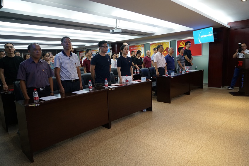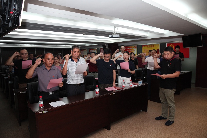 會議在莊嚴、神圣的《國歌》聲中開始。黨委委員、京華公司副總經理滕立軍宣讀“一先兩優(yōu)”表彰文件;黨委書記陸毅萍、黨委副書記羅云水為獲獎人員頒獎;先進黨支部書記歐文剛、優(yōu)秀黨員代表張藝涵發(fā)言;黨委委員、總會計師邢洋帶領全體黨員重溫入黨誓詞;王國慶總經理匯報公司上半年生產經營情況、梳理下半年工作計劃;京華信息公司總經理潘光宇分享5G概念介紹及商用領域的探討;黨委書記陸毅萍女士傳達中共中央關于在全黨范圍內開展”不忘初心,牢記使命”主題教育活動的精神。