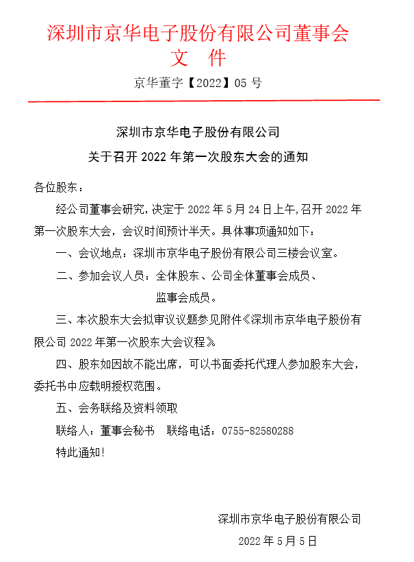 關于召開2022年第一次股東大會的通知